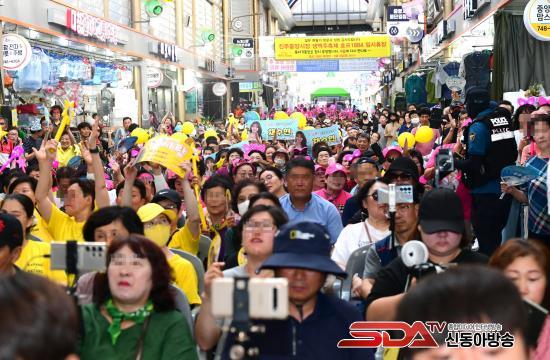 Çà»ç¿¡´Â Á¶±ÔÀÏ ÁøÁÖ½ÃÀåÀ» ºñ·ÔÇØ Áß¾Ó½ÃÀå, ³í°³½ÃÀå, û°ú½ÃÀå, ·Îµ¥¿À°Å¸® µîÀÇ Àα٠»óÀεé°ú 1500¿© ¸íÀÇ ½Ã¹ÎµéÀÌ Âü¿©ÇØ ¾î¿ï¸²°ú ÈÇÕÀÇ ÇѸ¶´çÀ» ÆîÃÆ´Ù.