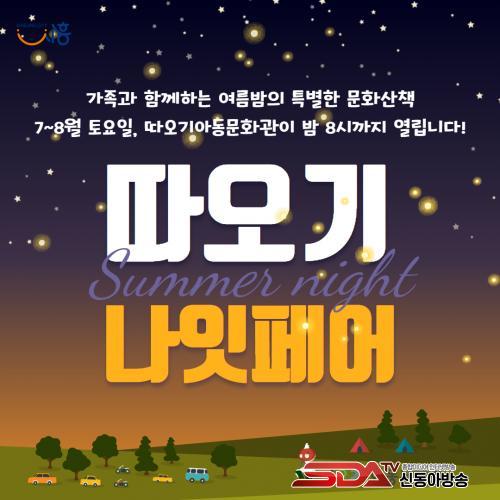 ¡®µû¿À±â ³ªÀÕÆä¾î¡¯´Â 7¿ù°ú 8¿ù ¸ÅÁÖ Åä¿äÀÏ, ¿î¿µ ½Ã°£À» ±âÁ¸º¸´Ù 2½Ã°£ ¿¬ÀåÇØ ¿ÀÈÄ 8½Ã±îÁö ¹®È°üÀ» °³¹æÇÏ´Â ¾ß°£ ¹®ÈÇà»ç·Î, ¹«´õ¿î ¿©¸§ Àú³á ½Ã°£, °¡Á· ´ÜÀ§ ¹æ¹®°´µéÀÌ ´õ¿í ¿©À¯·Ó°Ô ¹®È¸¦ Áñ±æ ¼ö ÀÖµµ·Ï ¸¶·ÃµÆ´Ù.