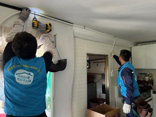 ¹«´õ¿î ³¯¾¾ ¼Ó ¿¾ÇÇÑ È¯°æ¿¡¼ °ÅÁÖÇϴ Ȧ¸ö ¾î¸£½ÅÀ» ´ë»óÀ¸·Î º¹Áö±âµ¿´ë¿øµéÀº ³°Àº ½ÌÅ©´ë¸¦ ö°ÅÇϰí, ³ëÈÄ º®Áö¸¦ ±³Ã¼ÇÏ´Â µî ÄèÀûÇÏ°í ¾ÈÀüÇÑ °ø°£À¸·Î ¹Ù²Ù´Â µ¥ ±¸½½¶¡À» Èê·È´Ù.