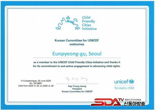 [½Åµ¿¾Æ¹æ¼Û ÀºÆò±¸=À̽ŵ¿±âÀÚ] ¼­¿ï ÀºÆò±¸°¡ Áö³­ 30ÀÏ À¯´Ï¼¼ÇÁ Çѱ¹À§¿øÈ¸·ÎºÎÅÍ ¾Æµ¿Ä£È­µµ½Ã »óÀ§´Ü°è ÀÎÁõÀ» ȹµæÇß´Ù°í ¹àÇû´Ù.