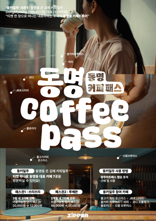 ¡®µ¿¸í Ä¿ÇÇÆÐ½º¡¯´Â ±¤ÁÖ¸¦ ãÀº ¿©Çà°´µéÀÌ ÇÑ ÀåÀÇ Æ¼ÄÏÀ¸·Î µ¿¸íµ¿ÀÇ °¨¼ºÀ» ´ãÀº 7°÷ÀÇ Ä«Æä¸¦ ¿©ÇàÇϵí ÀÚÀ¯·Ó°Ô ¹æ¹®ÇÒ ¼ö ÀÖµµ·Ï ±âȹµÈ Å¥·¹ÀÌ¼Ç »óǰÀÌ´Ù. ¡®µ¿Ä¿ÀÏÁÖ(µ¿¸íµ¿ ¿Â ±è¿¡ Ä¿ÇÇÀÏÁÖ)¡¯¶ó´Â ºÎÁ¦·Î 7¿ù 16ÀϺÎÅÍ 9¿ù±îÁö ½ÃÁð1ÀÌ ¿î¿µµÈ´Ù.