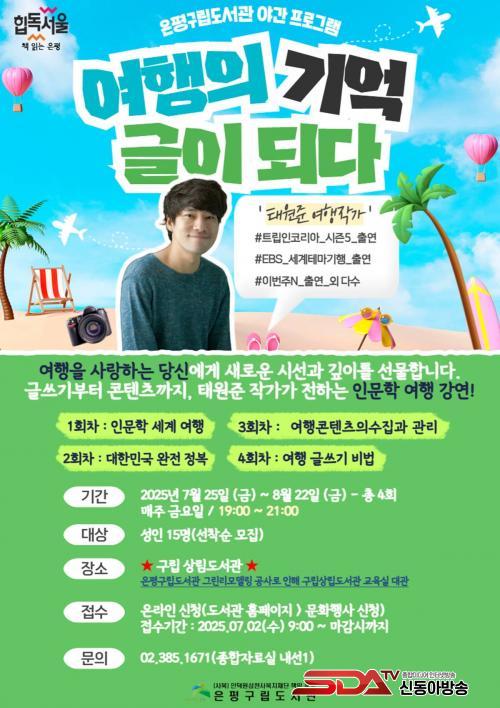 [½Åµ¿¾Æ¹æ¼Û ÀºÆò±¸=À̽ŵ¿±âÀÚ] ¼­¿ï ÀºÆò±¸´Â ÀºÆò±¸¸³µµ¼­°üÀÌ ¿À´Â 25ÀϺÎÅÍ ³»´Þ 22ÀϱîÁö ¾ß°£ Àι®ÇÐ ÇÁ·Î±×·¥ ¡®¿©ÇàÀÇ ±â¾ï, ±ÛÀÌ µÇ´Ù¡¯¸¦ ¿î¿µÇÑ´Ù°í ¹àÇû´Ù.