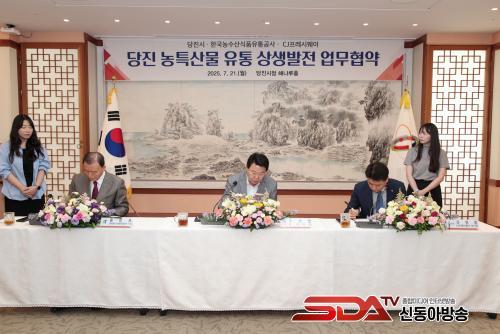 [½Åµ¿¾Æ¹æ¼Û=ÀÌÀçö±âÀÚ] ´çÁø½Ã(½ÃÀå ¿À¼ºÈ¯)´Â 7¿ù 21ÀÏ ´çÁø½Ãû ÇØ³ª·çȦ¿¡¼­ Çѱ¹³ó¼ö»ê½ÄǰÀ¯Åë°ø»ç(aT) ¹× CJÇÁ·¹½Ã¿þÀÌ ÇÔ²²¡®´çÁø½Ã ³óƯ»ê¹° À¯Åë Ȱ¼ºÈ­¸¦ À§ÇÑ »ó»ý¹ßÀü ¾÷¹«Çù¾à¡¯À» ü°áÇß´Ù°í ¹àÇû´Ù.