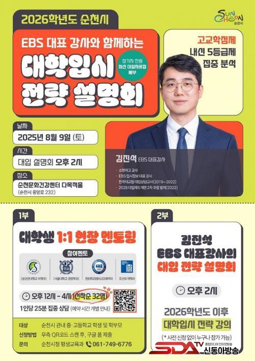 [½Åµ¿¾Æ¹æ¼Û ¼øÃµ=±è¿ëÈÆ ±âÀÚ] ¼øÃµ½Ã(½ÃÀå ³ë°ü±Ô)´Â »õ·Ó°Ô °³ÆíµÇ´Â ÀÔ½ÃÁ¦µµ¿¡ ´ëÀÀÇϰí Áö¿ª ÇлýµéÀÇ Áø·Î¡¤ÁøÇÐ Áغñ¸¦ Áö¿øÇϱâ À§ÇØ ¿À´Â 8¿ù 9ÀÏ ¼øÃµ½Ã¹®È­°Ç°­¼¾ÅÍ ´Ù¸ñÀûȦ¿¡¼­ ¡®2026Çг⵵ ´ëÇÐ ÀԽü³¸íȸ¡¯¸¦ °³ÃÖÇÑ´Ù°í ¹àÇû´Ù.