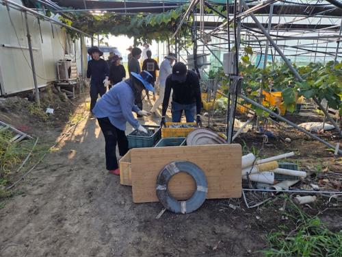 À̹ø º¹±¸Áö¿øÀº ³ó¾÷À¯Åë°ú, ³ó¾÷±â¼ú¼¾ÅÍ ¹× ³óÇù Á÷¿ø±îÁö ÃÑ 30¿© ¸íÀÌ Âü¿©ÇØ Ä§¼ö ÇÇÇØ¸¦ ÀÔÀº ¿°»ê¸éÀÇ »þÀθӽºÄÏ ÇϿ콺(1.2ha)¿¡¼­ Åä»ç Á¦°Å, ÇϿ콺 ³»ºÎ ÀÚÀç ¹× Æó±â¹° ó¸® µî ½ÇÁúÀûÀÎ º¹±¸¿Í ÀÏ»ó ȸº¹À» Áö¿øÇÏ¸ç ±¸½½¶¡À» Èê·È´Ù.