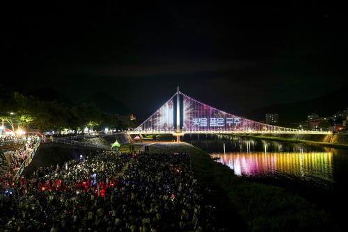 ³²´ëõ º°ºû ´Ù¸®´Â ¿¬Àå(L) 133m, º¸Çà Æø(B) 2m, ÁÖž ³ôÀÌ 30m ±Ô¸ðÀÇ °æ°üÁ¶¸í ±³·®À¸·Î, ¹ãÀ̸é ÇÏõ À§·Î ÀºÇϼö¸¦ ¿¬»óÄÉ ÇÏ´Â Á¶¸íÀÌ º°ºûÀÌ È帣µí ¹Ý¦À̸ç ÀÌ»öÀûÀΠdz°æÀ» ¿¬ÃâÇÑ´Ù.