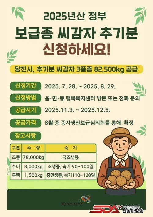 [½Åµ¿¾Æ¹æ¼Û=´çÁø½Ã³ó¾÷±â¼ú¼¾ÅÍ(¼ÒÀå ±è¼®±¤)´Â ³ó¹ÎµéÀÇ ¼Òµæ Áõ°¡¿Í ¾ÈÁ¤ÀûÀÎ °¨ÀÚ »ý»ê ±â¹Ý ¸¶·ÃÀ» À§ÇØ 8¿ù 29ÀϱîÁö 2025³â»ê Á¤ºÎ º¸±ÞÁ¾ ¾¾°¨ÀÚ Ãß±âºÐ ½ÅûÀ» ¹Þ´Â´Ù°í 1ÀÏ ¹àÇû´Ù.