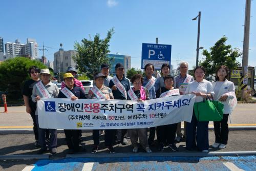 À̹ø Ä·ÆäÀο¡´Â ¿µ±¤±º°ú Àü³²ÁöüÀå¾ÖÀÎÇùȸ ¿µ±¤±ºÁöȸ(ÁöȸÀå ȲÈļ±) ȸ¿ø µî ÃÑ 16¸íÀÌ Âü¿©ÇÑ °¡¿îµ¥ ¡®Àå¾ÖÀÎÀü¿ëÁÖÂ÷±¸¿ª ÁöŰ±â¡¯ È«º¸ Ȱµ¿À» ÆîÃÆ´Ù. ¶ÇÇÑ, ¿µ±¤À¾ ³» °øµ¿ÁÖÅà 7°³¼Ò¸¦ ¹æ¹®ÇÏ¿© ÁֹΠ¾È³»¿Í È«º¸¹° ºÎÂø ¹× ¹èÆ÷ ÇùÁ¶¸¦ ¿äûÇß´Ù.