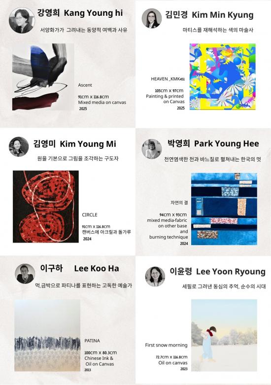 ¶ÇÇÑ, Àü½Ã¿¡ Âü¿©ÇÏ´Â ÀÛ°¡´Â ±è¹Î°æ ¿Ü¿¡µµ µ¿¾çÀû »çÀ¯¸¦ ȸȭ¿¡ ´ã¾Æ³»´Â °­¿µÈñ, µ¶Ã¢Àû ±â¹ýÀÇ ±è¿µ¹Ì, Çѱ¹Àû Á¤¼­ ¿°»ö ÀÛ¾÷À» ¼±º¸ÀÌ´Â ¹Ú¿µÈñ, ±¤¸ñ¡¤¸Ô¡¤±Ý¹ÚÀÇ À̱¸ÇÏ, ¹Ù¶÷°á°ú ¸Ó¸®Ä«¶ô ¹¦»ç°¡ µ¸º¸ÀÌ´Â ÀÌÀ±·É µî °³¼º ³ÑÄ¡´Â 6ÀÎÀÌ´Ù.