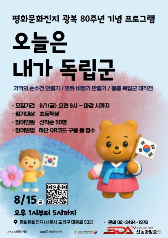 ¿À´Â 8¿ù 15ÀÏ ¿ÀÈÄ 1½ÃºÎÅÍ 5½Ã±îÁö ÁøÇàµÇ¸ç, µµºÀ±¸ Áö¿ª ³» ÃʵîÇлý ´©±¸³ª Âü¿©ÇÒ ¼ö ÀÖ´Ù. ½ÅûÀº Æ÷½ºÅÍ ³» Á¤º¸¹«´Ì(QR)·Î ÇÏ¸é µÈ´Ù. ¸ðÁýÀοøÀº 50¸íÀÌ¸ç ¼±Âø¼øÀ¸·Î Á¢¼ö¸¦ ¸¶°¨ÇÑ´Ù.