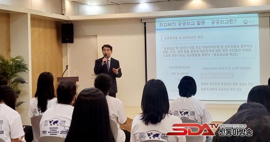 ¿Ü±³ºÎ¸¦ ¹æ¹®ÇÑ Çлý¿Ü±³°üµéÀÌ °ø°ø¿Ü±³ ´ë»ç¿Í ¸¸³ª ¿Ü±³ Àü·«°ú °ø°ø¿Ü±³ Ȱµ¿¿¡ ´ëÇØ ´ëÈ­Çϰí ÀÖ´Ù.