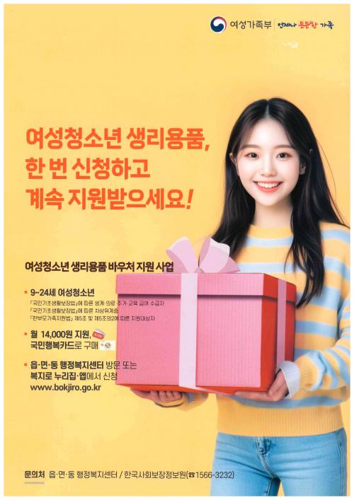 ±º»ê½Ã, ¿©¼º û¼Ò³â »ý¸®¿ëǰ ¹Ù¿ìó Áö¿ø
