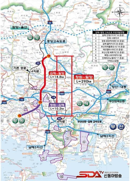 ±èÇØ~¹Ð¾ç °í¼Óµµ·Î °Ç¼³»ç¾÷Àº ÃÑ¿¬Àå 18.8km ±Ô¸ð·Î ±èÇØ Áø·ÊIC¿Í ³²¹Ð¾çIC¸¦ ¿¬°áÇÏ´Â ³ë¼±ÀÌ´Ù. ÀÌ ³ë¼±Àº ³²Çذí¼Óµµ·Î, Áß¾Ó°í¼Óµµ·Î, Áߺγ»·ú°í¼Óµµ·Î¸¦ ¿¬°èÇÏ´Â ÇÙ½É ±¸°£À¸·Î ¿Ï°ø ½Ã ºÎ»ê¡¤°æ³² ³»·ú±Ç °£ ÅëÇà½Ã°£ÀÌ È¹±âÀûÀ¸·Î ´ÜÃàµÇ°í ¹°·ù È帧ÀÇ È¿À²¼ºÀÌ ´ëÆø Çâ»óµÉ °ÍÀ¸·Î ±â´ëµÈ´Ù.