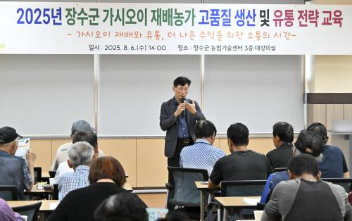 [½Åµ¿¾Æ¹æ¼Û=ÀüÀº¼÷±âÀÚ] Àå¼ö±ºÀº ³ó¾÷±â¼ú¼¾ÅÍ ´ë°­Àǽǿ¡¼­ °¡½Ã¿ÀÀÌ Àç¹è ³ó°¡ 50¿© ¸íÀ» ´ë»óÀ¸·Î °íǰÁú »ý»ê°ú ¾ÈÁ¤ÀûÀÎ À¯Åë¸Á ±¸ÃàÀ» À§ÇÑ ±³À°À» ½Ç½ÃÇß´Ù°í 12ÀÏ ¹àÇû´Ù.