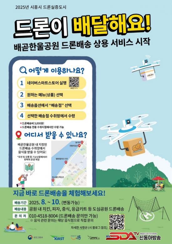 [½Åµ¿¾Æ¹æ¼Û ½ÃÈï½Ã=À̽ŵ¿±âÀÚ] ½ÃÈï½Ã°¡ ±¹Åä±³ÅëºÎ ¡®2025 µå·Ð ½ÇÁõµµ½Ã ±¸Ãà»ç¾÷¡¯ °ø¸ð¿¡ ¼±Á¤µÅ, ÀÌ´ÞºÎÅÍ 10¿ù ¸»±îÁö ¹è°ðÇÑ¿ï°ø¿ø ÀÏ´ë¿¡¼­ µå·ÐÀ» Ȱ¿ëÇÑ ¹è¼Û ½ÇÁõ»ç¾÷¿¡ º»°Ý Âø¼öÇÑ´Ù. À̹ø »ç¾÷Àº ½ÃÈï½Ã°¡ ±¹ºñ 5¾ï ¿øÀ» È®º¸ÇØ ÃßÁøÇÏ´Â µå·Ð¹è¼Û »ó¿ëÈ­ »ç¾÷À¸·Î, °ø¿øÀ» ã´Â ½Ã¹ÎµéÀÌ µå·ÐÀ¸·Î ¹è´ÞµÇ´Â À½½ÄÀ» Á÷Á¢ ¹Þ¾Æº¼ ¼ö Àִ ü°¨Çü ¼­ºñ½º´Ù.