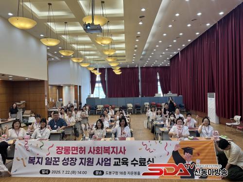 [½Åµ¿¾Æ¹æ¼Û µµºÀ±¸=À̽ŵ¿±âÀÚ] ¼­¿ï µµºÀ±¸°¡ 'Àå·Õ¸éÇã »çȸº¹Áö»ç º¹Áö ÀÏ²Û ¼ºÀå Áö¿ø±³À°' ¼ö·á»ý 32¸íÀ» ¹èÃâÇß´Ù. ÀÌ °¡¿îµ¥ ¼ö·á»ý 2¸íÀÌ Ãë¾÷¿¡ ¼º°øÇÏ¸ç ±³À°ÀÇ ½ÇÈ¿¼ºÀ» ÀÔÁõÇß´Ù.