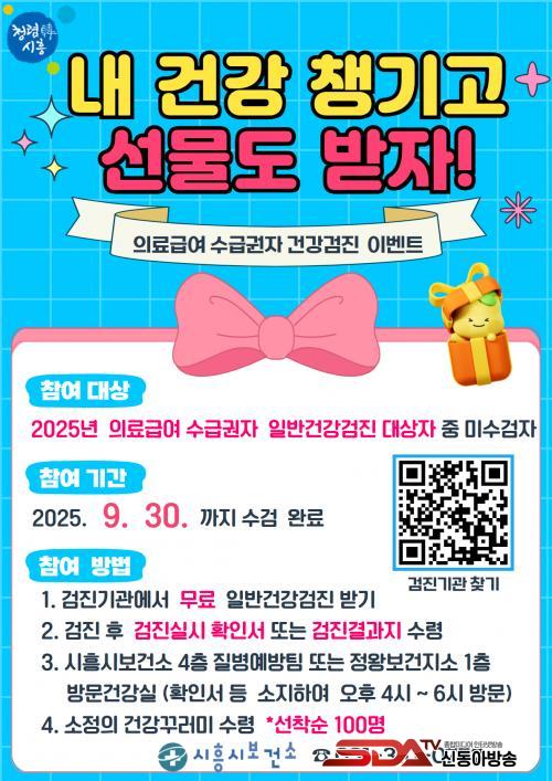 ¶ÇÇÑ ½Ã´Â ÀÇ·á¼ö±Þ±ÇÀÚÀÇ °Ç°­°ËÁø Âü¿©¸¦ µ¶·ÁÇϱâ À§ÇØ ¿À´Â 9¿ù ¸»±îÁö °ËÁø ÈÄ °á°úÁö¸¦ Á¦ÃâÇÏ¸é ¼±Âø¼ø 100¸í¿¡°Ô °Ç°­²Ù·¯¹Ì¸¦ Á¦°øÇÒ °èȹÀÌ´Ù.