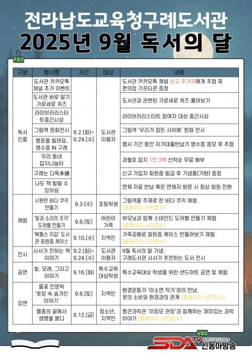 Àü¶ó³²µµ±³À°Ã»±¸·Êµµ¼­°ü, Áö½Ä°ú °¨¼ºÀÇ Ç⿬ ¡®9¿ù µ¶¼­ÀÇ ´Þ¡¯ ¿î¿µ