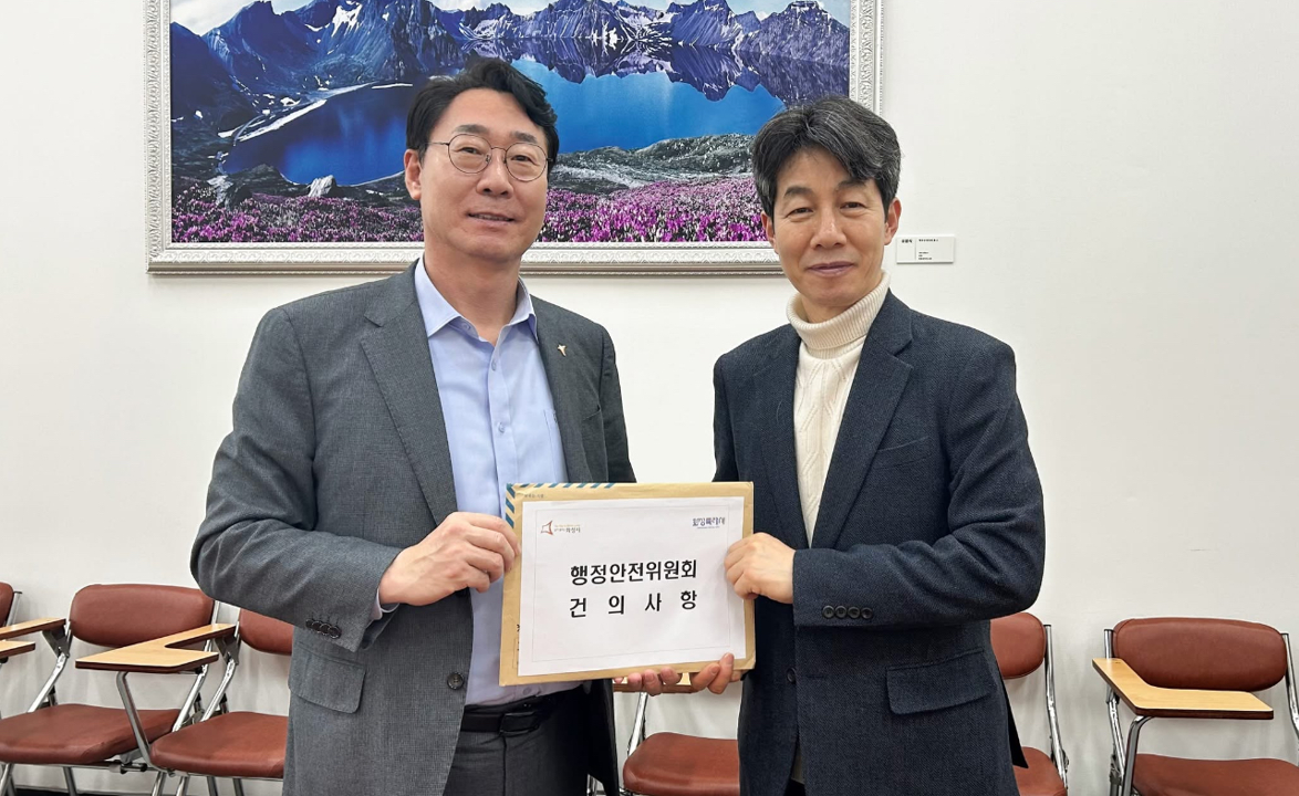 »çÁø=Á¤¸í±Ù È­¼ºÆ¯·Ê½ÃÀåÀÌ ±¹È¸ ÇàÁ¤¾ÈÀüÀ§¿øÈ¸¿¡ ÀϹݱ¸ ½Å¼³ °ÇÀǾÈÀ» Á¦ÃâÇϰí ÀÖ´Ù