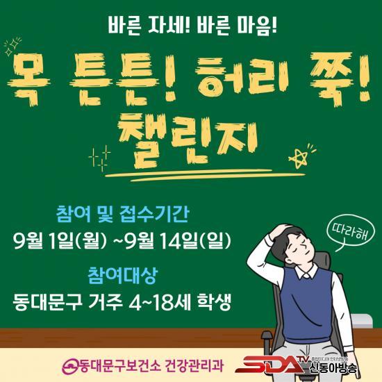 À̹ø 縰Áö´Â °ü³» 4~18¼¼ ¾Æµ¿‧û¼Ò³âÀ» ´ë»óÀ¸·Î 9¿ù 1ÀϺÎÅÍ 14ÀϱîÁö 2ÁÖ°£ ÁøÇàµÈ´Ù. Âü¿© ¹æ¹ýÀº µ¿´ë¹®±¸º¸°Ç¼Ò°¡ °³¹ßÇÑ ¡®¸ñ ưư! Ç㸮 Âß! üÁ¶¡¯¸¦ µû¶ó ÇÑ ÀÎÁõ»çÁøÀ» īī¿ÀÅå ä³Î ¡®µ¿´ë¹®±¸ ÀÏ»óÀÌ ¿îµ¿ÀÌ µÇ´Ù¡¯ ³» ¡®¸ñ ưư! Ç㸮 Âß! 縰Áö¡¯ ¸Þ´º¿¡ ¾÷·ÎµåÇÏ¸é µÈ´Ù.