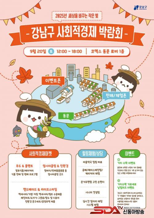 [½Åµ¿¾Æ¹æ¼Û °­³²±¸=À̽ŵ¿±âÀÚ] ²ÞÀÌ ¸ðÀÌ´Â µµ½Ã, ¹Ì·¡¸¦ ±×¸®´Â °­³²±¸°¡ ¿À´Â 9¿ù 20ÀÏ ³· 12½ÃºÎÅÍ ¿ÀÈÄ 6½Ã±îÁö ÄÚ¿¢½º µ¿¹® ·Îºñ 1Ãþ¿¡¼­ ¡®2025 °­³²±¸ »çȸÀû°æÁ¦¹Ú¶÷ȸ¡¯¸¦ °³ÃÖÇÑ´Ù. ¿ÃÇØ Çà»ç´Â ±âÁ¸ °­³²¿ª ¾ß¿Ü¹«´ë¿¡¼­ ¹þ¾î³ª ½Ç³» °ø°£¿¡¼­ ¿­¸®¸ç, »çȸÀû°æÁ¦±â¾÷ 30¿© °³¼Ò°¡ Âü¿©ÇÑ´Ù.