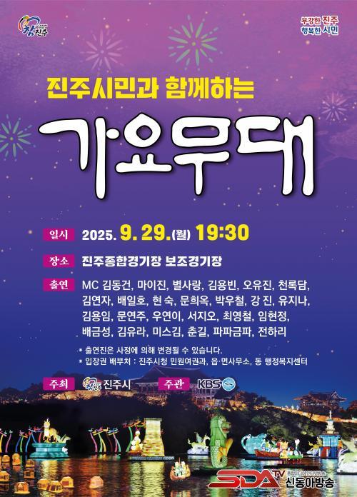 [½Åµ¿¾Æ¹æ¼Û °æ³²ÁøÁÖ=³²±Ã¿µ±â±âÀÚ] ÁøÁֽô 2025 ÁøÁÖ 10¿ù ÃàÁ¦ÀÇ ½ÃÀÛÀ» ¾Ë¸®´Â ¡®KBS °¡¿ä¹«´ë ƯÁý ÁøÁÖ½ÃÆí¡¯ÀÌ ¿À´Â 9¿ù 29ÀÏ ¿ÀÈÄ 7½Ã 30ºÐ ÁøÁÖÁ¾ÇÕ°æ±âÀå º¸Á¶°æ±âÀå¿¡¼­ °³ÃÖµÈ´Ù°í ¹àÇû´Ù.