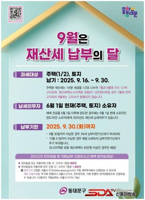 9¿ù Á¤±âºÐ Àç»ê¼¼ÀÇ ³³ºÎ ±â°£Àº 9¿ù 16ÀϺÎÅÍ 30ÀϱîÁöÀ̸ç, Àü±¹ ¾îµð¼³ª Á¾ÀÌ °íÁö¼ ¾øÀÌ ¼¿ï½Ã ÀÎÅͳݳ³ºÎ½Ã½ºÅÛ(etax.seoul.go.kr), STAX ¾Û, ½º¸¶Æ®ÆùÀ» ÅëÇÑ ½Å¿ëÄ«µå °áÁ¦‧°èÁÂÀÌü‧°£Æí°áÁ¦, Àü¿ë°èÁ ÀÌü, ÀºÇà CD/ATM µîÀ» ÀÌ¿ëÇØ Æí¸®ÇÏ°Ô ³³ºÎÇÒ ¼ö ÀÖ´Ù.