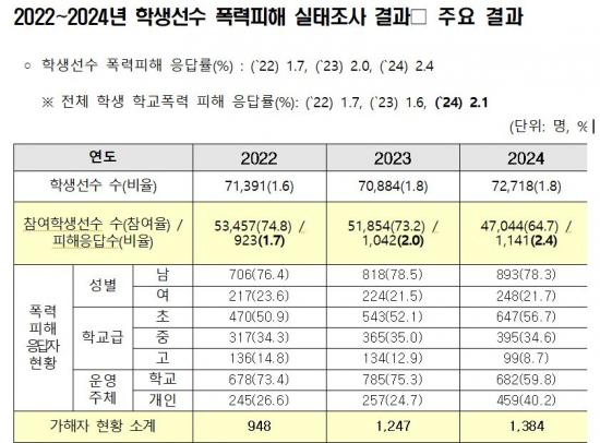 [½Åµ¿¾Æ¹æ¼Û ÀÎõ=À±¹Î½Ä±âÀÚ]¡à ´õºÒ¾î¹ÎÁÖ´ç ¹é½Â¾Æ ±¹È¸ÀÇ¿ø(±³À°À§¿øÈ¸)ÀÌ °ø°³ÇÑ ¡®2022~2024³â Çлý¼±¼ö Æø·ÂÇÇÇØ ½ÇÅÂÁ¶»ç °á°ú¡¯ ÀÚ·á¿¡ µû¸£¸é, ÃÖ±Ù 3³â Çлý¼±¼ö Æø·ÂÇÇÇØ ÀÀ´ä °ÇÀÌ Áö¼Ó Áõ°¡ÇÏ´Â °¡¿îµ¥, ¡°è µî ÈļÓÁ¶Ä¡ °ÇÀº °è¼ÓÇØ¼­ Ç϶ôÇÏ´Â °ÍÀ¸·Î µå·¯³µ´Ù.