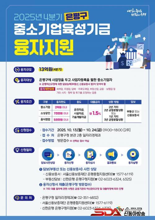 [½Åµ¿¾Æ¹æ¼Û ÀºÆò±¸=À̽ŵ¿±âÀÚ] ¼­¿ï ÀºÆò±¸´Â °ü³» Áß¼Ò±â¾÷°ú ¼Ò»ó°øÀÎÀÇ °æ¿µ ¾ÈÁ¤À» À§ÇØ ÃÑ 13¾ï ¿ø ±Ô¸ðÀÇ Áß¼Ò±â¾÷ À°¼º±â±Ý À¶ÀÚ¸¦ ½ÃÇàÇÑ´Ù°í ¹àÇû´Ù.