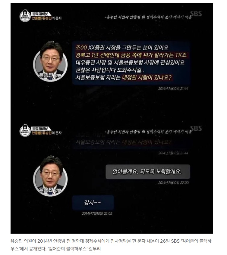 À¯½Â¹Î Àü ÀÇ¿øÀº ÀÌ¹Ì Àλç ûŹ °ü·Ã ³í¶õÀÌ ÀÖ¾ú´Ù. ±è¾îÁØÀÇ ºí·¢ÇϿ콺