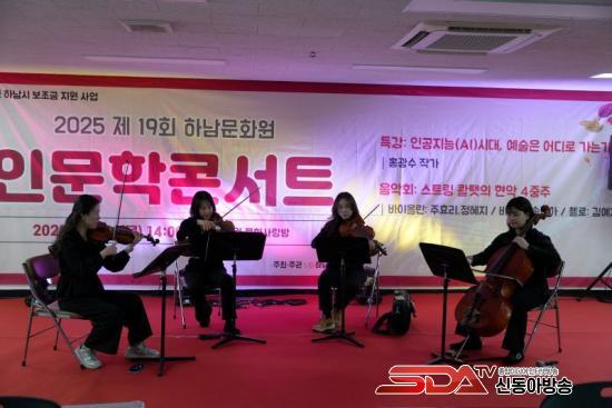 Ư°­ ÈÄ À̾îÁø Çö¾Ç 4ÁßÁÖ ¿¬ÁÖÆÀ ¡®½ºÆ®¸µ ÄåÅÝ(String Quartet)¡¯ÀÇ °ø¿¬Àº Àι®ÇÐ Äܼ­Æ®ÀÇ ÁÖÁ¦¿Í ±ä¹ÐÈ÷ ¿¬°áµÇ¸ç ±íÀº ÀλóÀ» ³²°å´Ù. À̹ø ¹«´ë´Â ¡®±â¼úÀÌ ´ëüÇÒ ¼ö ¾ø´Â Àΰ£Àû °¨¼º¡¯À» À½¾ÇÀ¸·Î Ç¥ÇöÇÏ´Â µ¥ ÃÊÁ¡À» ¸ÂÃß¾î ±âȹµÇ¾ú´Ù. ÇöÀå¿¡¼­ ¿¬ÁÖµÈ ¡®Gabriel¡¯s Oboe¡¯, ¡®Air on G String¡¯, ¡®Clair de Lune¡¯ µî Ŭ·¡½Ä ¸í°îµéÀº ÃÖ±Ù AI°¡ ÀÚÁÖ ÀçÇØ¼®ÇÏ´Â ÀÛǰµéÀ̱⵵ ÇÏ´Ù.