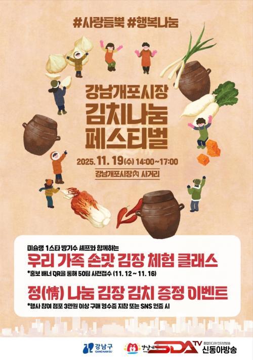 [½Åµ¿¾Æ¹æ¼Û °­³²±¸=À̽ŵ¿±âÀÚ] ²ÞÀÌ ¸ðÀÌ´Â µµ½Ã, ¹Ì·¡¸¦ ±×¸®´Â °­³²±¸°¡ ¿À´Â 11¿ù 19ÀÏ ¿ÀÈÄ 2½ÃºÎÅÍ 5½Ã±îÁö °­³²°³Æ÷½ÃÀå ÀÏ´ë¿¡¼­ ¡®°­³²°³Æ÷½ÃÀå ±èÄ¡ ³ª´® Æä½ºÆ¼¹ú¡¯À» °³ÃÖÇÑ´Ù.