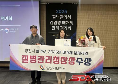 [½Åµ¿¾Æ¹æ¼Û=ÀÌÀçö±âÀÚ] ´çÁø½Ãº¸°Ç¼Ò(¼ÒÀå ¹ÚÁ¾±Ô)´Â Áö³­ 2ÀÏ Áúº´°ü¸®Ã»ÀÌ ÁÖ°üÇÑ 2025³â °¨¿°º´ ¸Å°³Ã¼ °ü¸® Æò°¡È¸¿¡¼­ °¨¿°º´ ¸Å°³Ã¼ ¹æÁ¦ ºÐ¾ß ¿ì¼ö±â°üÀ¸·Î ¼±Á¤µÅ Áúº´°ü¸®Ã»Àå ǥâÀ» ¹Þ¾Ò´Ù°í 4ÀÏ ¹àÇû´Ù.