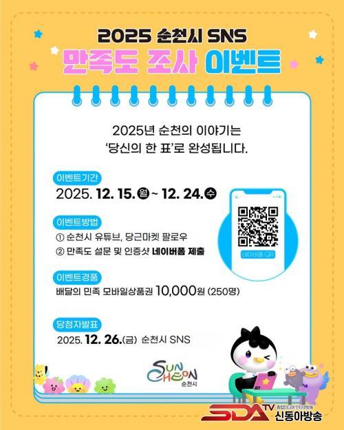 [½Åµ¿¾Æ¹æ¼Û ¼øÃµ=±è¿ëÈÆ ±âÀÚ] ¼øÃµ½Ã´Â ½Ã °ø½Ä SNS ä³Î ÀÌ¿ëÀÚµéÀ» ´ë»óÀ¸·Î ¡®2025³â ¼øÃµ½Ã SNS ¸¸Á·µµ Á¶»ç À̺¥Æ®¡¯¸¦ °³ÃÖÇÑ´Ù°í ¹àÇû´Ù.