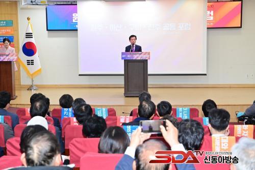 ƯÈ÷ À̳¯ Æ÷·³¿¡¼­´Â ÁøÁÖ¡¤¿øÁÖ¡¤¾Æ»ê¡¤±¸¹Ì½Ã µî 4°³ã¼ ½ÃÀåÀÌ °øµ¿¼±¾ð¹®¿¡ ¼­¸íÇϰí, Àα¸ 30¸¸ ¸í¡¤¸éÀû 500§´ ÀÌ»óÀÇ Áö¹æÀÚÄ¡´Üü¿¡ ´ëµµ½Ã Ư·Ê¸¦ ºÎ¿©ÇÒ ¼ö ÀÖµµ·Ï ¡ã¡¸Áö¹æÀÚÄ¡ºÐ±Ç ¹× Áö¿ª±ÕÇü¹ßÀü¿¡ °üÇÑ Æ¯º°¹ý¡¹ ÀϺΰ³Á¤¾ÈÀÇ Á¶¼ÓÇÑ Åë°ú ¡ãÁö¹æ °ÅÁ¡µµ½ÃÀÇ ÀÚÀ²Àû ¼ºÀå ¿©°ÇÀ» µÞ¹ÞħÇÒ Á¦µµÀû ±â¹Ý ¸¶·Ã ¡ã½ÇÁúÀûÀÎ ±ÇÇÑ À̾ç°ú ¹Ì·¡ ¼ºÀå µ¿·Â Áö¿øÀ» Á¤ºÎ¿Í ±¹È¸¿¡ °øµ¿À¸·Î °ÇÀÇÇß´Ù.