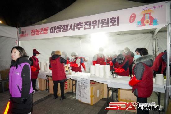 ¿ÃÇØµµ ±× ½ÄŹÀº ³Ë³ËÇß´Ù. ÇÑÆÄÁÖÀǺ¸°¡ ¿¹º¸µÈ Ãß¿î ³¯¾¾¿¡µµ ¾à 5000¿© ¸íÀÌ ¹èºÀ»êÀ» ã¾Ò°í, ¿ÀÀü 9½Ã±îÁö ¶±±¹ 3600¿© ±×¸©ÀÌ ³ª´²Á³´Ù. ¸¶À»Çà»çÃßÁøÀ§¿øÈ¸¿Í ÀÚ¿øºÀ»çÀÚµé, Àü³ó2µ¿À» ºñ·ÔÇÑ µ¿´ë¹®±¸ À¯°üºÎ¼ Á÷¿øµéÀº »õº®ºÎÅÍ ¼Õ¹ßÀ» ¸ÂÃè´Ù. ¶ß°Å¿î ±×¸©À» °Ç³×¸ç ¡°Á¶½ÉÇϼ¼¿ä¡±¸¦ µÇÇ®ÀÌÇß°í, ¾ÆÀ̵鿡°Õ ±¹¹°À» ½ÄÇô ÁÖ¸ç ¡°ÃµÃµÈ÷¡±¸¦ ´õÇß´Ù. ±× ¸ðµç µðÅ×ÀÏÀÌ ÀÌ Çà»ç¸¦ ¡®µ¿³×°¡ ½º½º·Î °¡²Ù´Â »õÇØ dz°æ¡¯À¸·Î ¸¸µé¾ú´Ù.