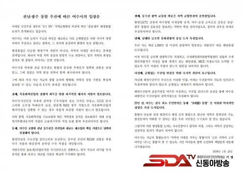 »çÁø=¿©¼ö½Ãû, Àü³²¡¤±¤ÁÖ ÅëÇÕ ÃßÁø¿¡ µû¸¥ ¿©¼ö½ÃÀÇ ÀÔÀå¹®