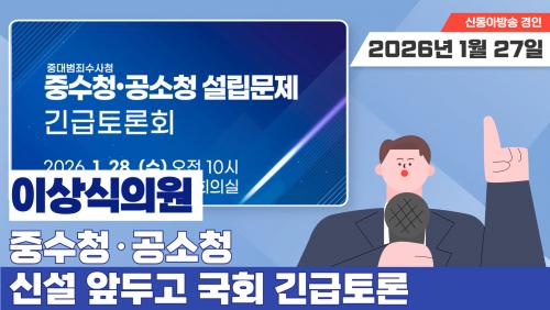 ´õºÒ¾î¹ÎÁÖ´ç ÀÌ»ó½Ä ÀÇ¿ø(°æ±â ¿ëÀΰ©)Àº ¿À´Â 28ÀÏ ¿ÀÀü 10½Ã ±¹È¸ ÀÇ¿øÈ¸°ü Á¦8°£´ãȸÀǽǿ¡¼­ ¡®Áß¼öû¡¤°ø¼Òû ¹ý¾È ±ä±ÞÅä·Ðȸ¡¯¸¦ °³ÃÖÇÑ´Ù°í ¹àÇû´Ù. À̹ø Åä·Ðȸ´Â À§¼º°ï, ÀÌÇØ½Ä, ±ÇÄ¥½Â, À̱¤Èñ, ÀÌÀç°ü ÀÇ¿øÀÌ °øµ¿ÁÖÃÖ·Î Âü¿©ÇÑ´Ù.