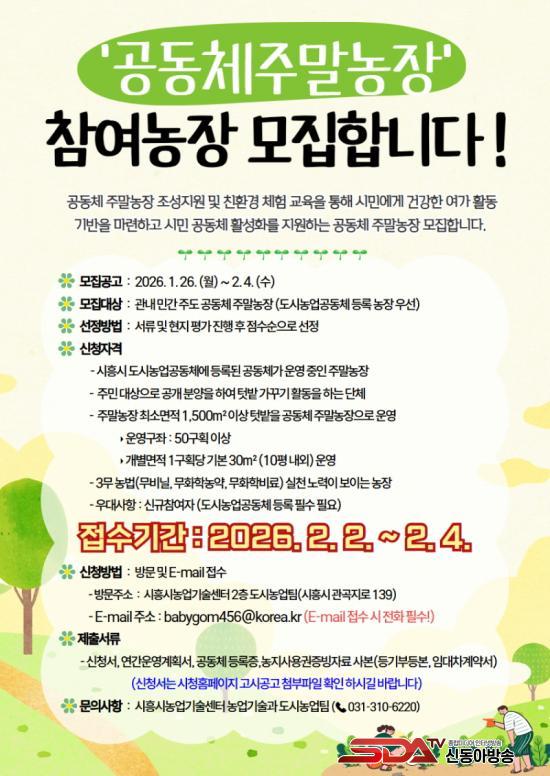 [½Åµ¿¾Æ¹æ¼Û ½ÃÈï½Ã=À̽ŵ¿±âÀÚ] ½ÃÈï½Ã´Â µµ½Ã¹ÎÀÇ ³ó¾÷ üÇè ±âȸ¸¦ È®´ëÇϰí Áö¿ª°øµ¿Ã¼ Ȱ¼ºÈ­¸¦ µµ¸ðÇϱâ À§ÇØ ¡®2026³â °øµ¿Ã¼ ÁÖ¸»³óÀå Á¶¼º ¹× ¿î¿µ Áö¿ø »ç¾÷¡¯À» ¿î¿µÇÏ´Â °¡¿îµ¥, ¹Î°£ ÁÖµµ °øµ¿Ã¼ ÁÖ¸»³óÀå 5°÷À» ¿À´Â 2¿ù 2ÀϺÎÅÍ 4ÀϱîÁö ¸ðÁýÇÑ´Ù.