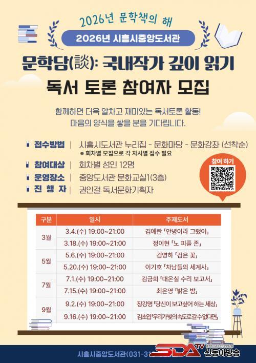 [½Åµ¿¾Æ¹æ¼Û ½ÃÈï½Ã=À̽ŵ¿±âÀÚ] ½ÃÈï½ÃÁß¾Óµµ¼­°üÀº ¡®2026³â ¹®ÇÐÃ¥ÀÇ ÇØ¡¯¸¦ ¸Â¾Æ ±¹³» ´ëÇ¥ ¹®ÇÐ ÀÛ°¡ ¼Ò¼³À» ÁÖÁ¦·Î ÇÑ µ¶¼­Åä·Ð ¡®¹®Çдã(ÓÈ): ±¹³» ÀÛ°¡ ±íÀÌ Àб⡯¸¦ ¿À´Â 3¿ùºÎÅÍ 9¿ù±îÁö ¿î¿µÇÑ´Ù.