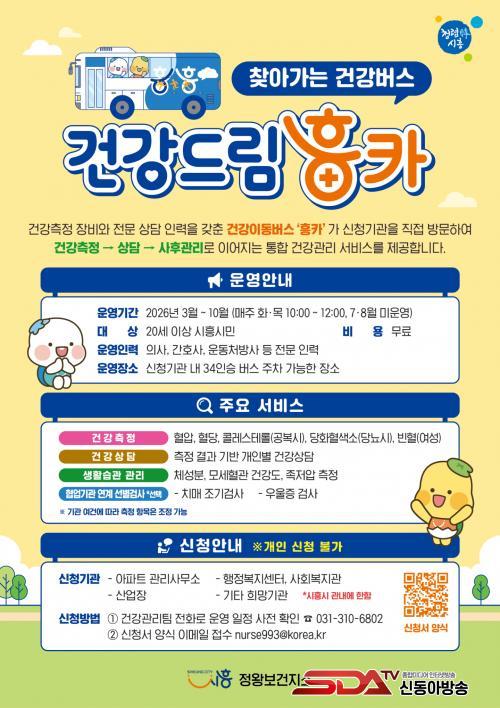 [½Åµ¿¾Æ¹æ¼Û ½ÃÈï½Ã=À̽ŵ¿±âÀÚ] ½ÃÈï½Ã´Â ½Ã¹ÎÀÇ °Ç°­ ÁõÁø°ú ÀÏ»ó ¼Ó °Ç°­°ü¸® ½ÇõÀ» Áö¿øÇϱâ À§ÇØ Ã£¾Æ°¡´Â °Ç°­¹ö½º ¡®°Ç°­µå¸² ÈïÄ«¡¯¸¦ 3¿ùºÎÅÍ 10¿ù±îÁö ¹«·á·Î ¿î¿µÇÑ´Ù.
