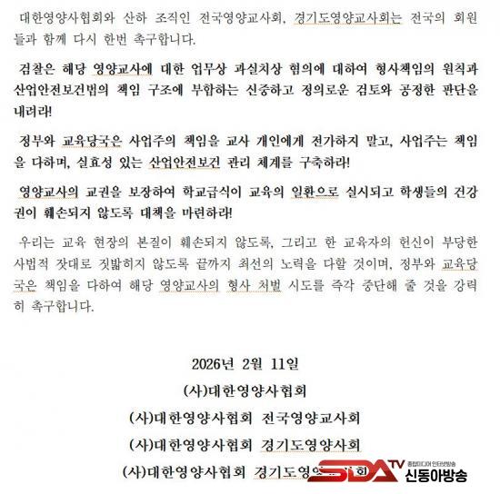 ¡à ¿µ¾ç»çÇùȸ´Â °øµ¿ ÀÔÀåÀ» ÅëÇØ ¡°¿µ¾ç±³»ç¿¡ ´ëÇÑ ¡®¾÷¹«»ó °ú½ÇÄ¡»ó¡¯ ¼ÛÄ¡´Â »ç¾÷ÁÖÀÇ Ã¥ÀÓÀ» ±³¿ø °³Àο¡°Ô Àü°¡ÇÏ°í ±³À° ÇöÀåÀÇ Àü¹®¼º°ú ¹ýÀû Ã¥ÀÓ ±¸Á¶¸¦ ¹«½ÃÇÑ Ã³»ç¡±¶ó¸ç, ¡°°ËÂûÀº ÇØ´ç ¿µ¾ç±³»ç¿¡ ´ëÇÑ ¾÷¹«»ó °ú½ÇÄ¡»ó ÇøÀÇ¿¡ ´ëÇØ ½ÅÁßÇϰí Á¤ÀÇ·Î¿î ¹ý¸® °ËÅ並 ÇØ¾ß ÇÑ´Ù¡±°í Ã˱¸Çß´Ù.