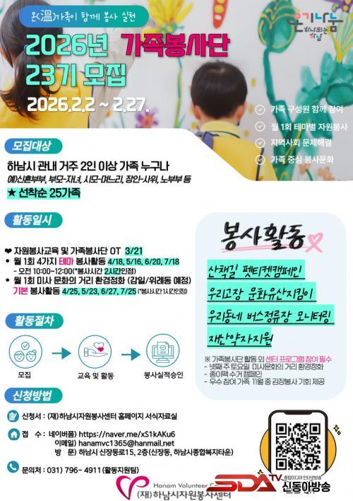 [½Åµ¿¾Æ¹æ¼Û Çϳ²½Ã=À̽ŵ¿±âÀÚ] (Àç)Çϳ²½ÃÀÚ¿øºÀ»ç¼¾ÅÍ´Â °¡Á·ÀÌ ÇÔ²² Âü¿©ÇÏ´Â ÀÚ¿øºÀ»ç ÇÁ·Î±×·¥ÀΡ®Á¦23±â Çϳ²½ÃÀÚ¿øºÀ»ç¼¾ÅÍ °¡Á·ºÀ»ç´Ü¡¯Âü¿© °¡Á·À» ¼±Âø¼ø 25°¡Á· ¸ðÁýÇÑ´Ù.