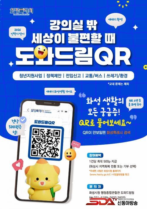 [½Åµ¿¾Æ¹æ¼Û=ÀÌÀçö±âÀÚ] È­¼ºÆ¯·Ê½Ã°¡ ½ÅÇб⸦ ¸Â¾Æ °ü³» ´ëÇлýÀ» ´ë»óÀ¸·Î¡¸»ýȰºÒÆí µµ¿Íµå¸² QR¡¹ÁýÁß È«º¸¿¡ ³ª¼±´Ù. ¸ð¹ÙÀÏ È°¿ëµµ°¡ ³ôÀº û³âÃþÀÇ Æ¯¼ºÀ» ¹Ý¿µÇØ »ýȰ ¼Ó ºÒÆí ½Å°í Âü¿©¸¦ È®´ëÇϰí, ½Ã¹Î ü°¨Çü ÇàÁ¤À» ÇÑÃþ °­È­Çϱâ À§ÇÑ ÃëÁö´Ù.