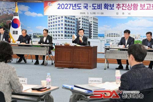[½Åµ¿¾Æ¹æ¼Û °æ³²ÁøÁÖ=±è¸í¼ö±âÀÚ] ÁøÁֽô 5ÀÏ Á¶±ÔÀÏ ½ÃÀå ÁÖÀç·Î ºÎ½ÃÀå°ú ±¹¡¤°úÀå µî °£ºÎ °ø¹«¿øÀÌ Âü¼®ÇÑ °¡¿îµ¥ ¡®2027³âµµ ±¹¡¤µµºñ È®º¸¸¦ À§ÇÑ ÃßÁø »óȲ º¸°íȸ¡¯¸¦ °³ÃÖÇß´Ù.