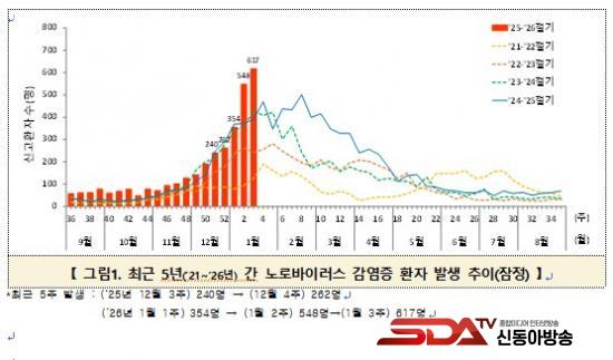 Áúº´°ü¸®Ã»ÀÌ º´¿ø±Þ ÀÇ·á±â°ü(210°³¼Ò) Àå°ü¿°Áõ Ç¥º»°¨½Ã °á°ú¿¡ µû¸£¸é, 2026³â 1¿ù 3ÁÖ ±âÁØ ³ë·Î¹ÙÀÌ·¯½º °¨¿°Áõ ȯÀÚ´Â 617¸íÀ¸·Î ÃÖ±Ù 5³â ³» °¡Àå ¸¹Àº ¼öÁØÀ» ±â·ÏÇß´Ù. ÀÌ °¡¿îµ¥ 0~6¼¼ ¿µÀ¯¾Æ°¡ ÀüüÀÇ 51.1%¸¦ Â÷ÁöÇØ ÀüÁÖ(39.6%) ´ëºñ 11.5%Æ÷ÀÎÆ® Áõ°¡Çß´Ù.