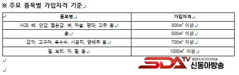 2026³âºÎÅÍ´Â ¼Ò±Ô¸ð ³ó°¡ÀÇ °¡ÀÔ ÀÚ°ÝÀÌ ´ëÆø ¿ÏÈ­µÈ´Ù. »ç°ú, ¹è, º­ µî ÁÖ¿ä ǰ¸ñÀº Àç¹è¸éÀû 300§³(¾à 90Æò) ÀÌ»óÀÌ¸é °¡ÀÔÀÌ °¡´ÉÇϵµ·Ï ¹®ÅÎÀ» ³·Ãè´Ù. ¿µ¼¼ ³ó°¡±îÁö ÀçÇØº¸Çè ÇýÅÃÀ» È®´ëÇϱâ À§ÇÑ Á¶Ä¡´Ù.
