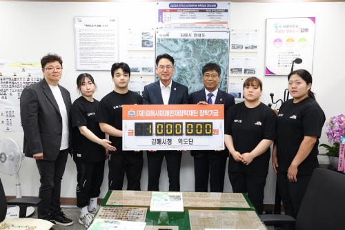 [½Åµ¿¾Æ¹æ¼Û °æ³²±èÇØ=³²±Ã¿µ±â±âÀÚ] ±èÇØ½Ã¹Ì·¡ÀÎÀçÀåÇÐÀç´ÜÀº Áö³­ 8ÀÏ ±èÇØ½Ãû ¿ªµµ´Ü¿¡¼­ 100¸¸¿øÀ» ±âŹÇß´Ù°í ¹àÇû´Ù. ½Ãû ¿ªµµ´ÜÀº 2022³âºÎÅÍ ÃÑ 400¸¸¿øÀÇ ÀåÇбâ±ÝÀ» ±âŹÇß´Ù. 2019³â â´ÜµÈ ½Ãû ¿ªµµ´ÜÀº 2023³â Ç×Àú¿ì¾Æ½Ã¾È°ÔÀÓ¿¡¼­ Àº¸Þ´ÞÀ» ȹµæÇÑ¡¦