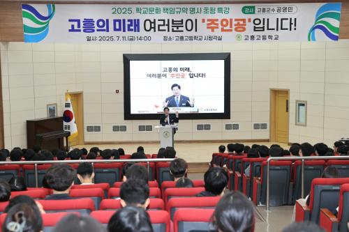 [½Åµ¿¾Æ¹æ¼Û Àü³²°íÈï=¹Ú±¤¿Á±âÀÚ] °íÈﱺ(±º¼ö °ø¿µ¹Î)Àº 11ÀÏ Áö¿ª ÀÎÀç ¾ç¼ºÀÇ »ê½ÇÀÎ °íÈï°íµîÇб³¿¡¼­ ¡®°íÈïÀÇ ¹Ì·¡, ¿©·¯ºÐÀÌ ÁÖÀΰøÀÔ´Ï´Ù¡¯¸¦ ÁÖÁ¦·Î Ư°­À» ÁøÇàÇß´Ù°í ¹àÇû´Ù. À̹ø Ư°­Àº Çлýµé¿¡°Ô ÀÚ½ÅÀÇ ¹Ì·¡¿¡ ´ëÇÑ ºñÀü°ú µµÀü Á¤½ÅÀ» ½É¾îÁÖ±â À§¡¦
