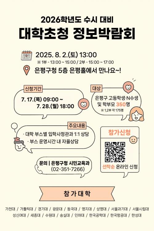 ÀºÆò±¸¶û 2026Çг⵵ ¼ö½Ã ´ëºñÇÏÀÚ!¡¦¼öµµ±Ç 17°³ ´ëÇÐ ÃÊÃ»ÇØ Á¤º¸¹Ú¶÷ȸ ¿­¾î